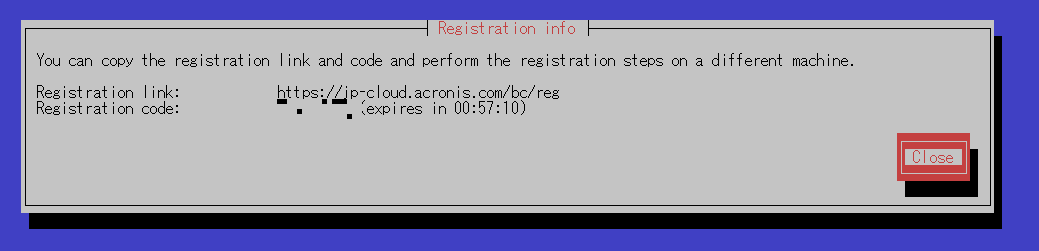 図4. Show registration infoを選択する - 次にコードを控え、AcronisのWeb管理コンソールで登録処理を行います