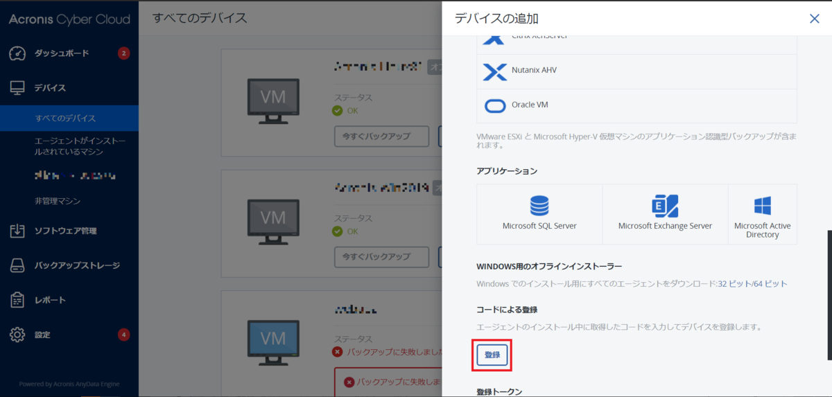 - Acronisにサーバーを登録(Acronis)