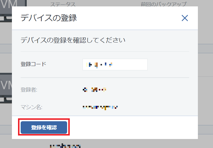 - 登録コードの入力フォームが表示されますので、先ほど控えたコードを入力し登録を行います