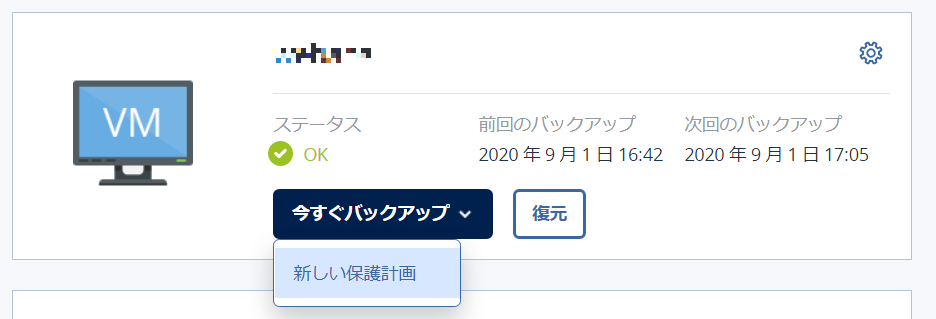 デバイス→すべてのデバイス→先ほど登録した仮想マシンの右側にある歯車のマーク→保護→新しい保護計画
