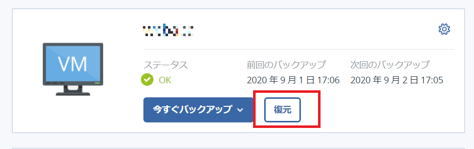 登録した仮想マシン→復元