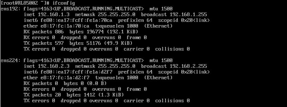 - RL85001、RL85002両方のifconfigを取得する(データリカバリ成功を確認するため)