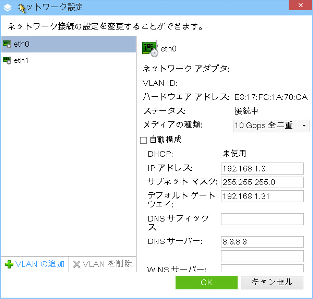 OS上から、各NICへIPを付与します。