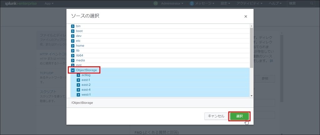 ・補足 オブジェクトストレージをSplunkサーバー(CentOS7.1)から「goofys」を利用してマウントしています。
