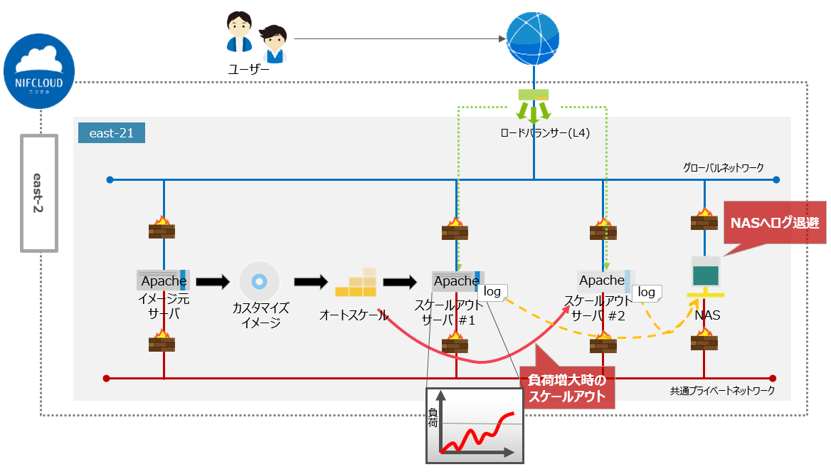 そこで今回はOS機能のスタートアップスクリプトを使用し、スケールアウトしたWebサーバーのシスログをNAS上へ保存する手順の検証を実施してみました。