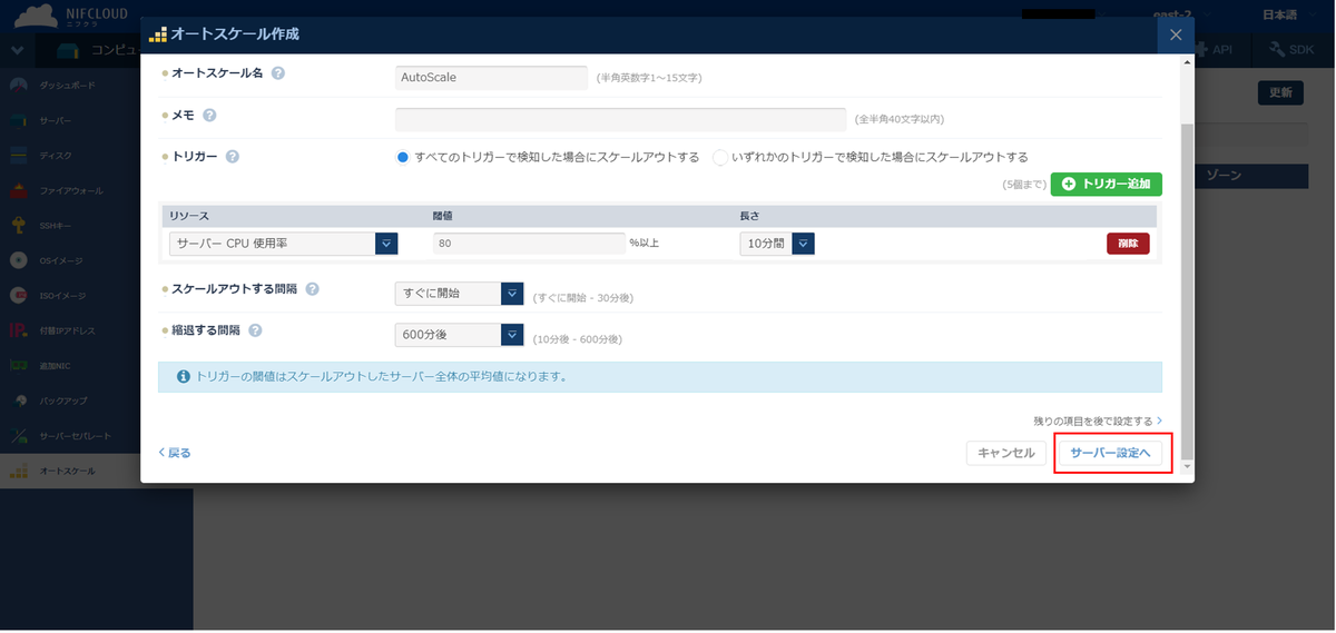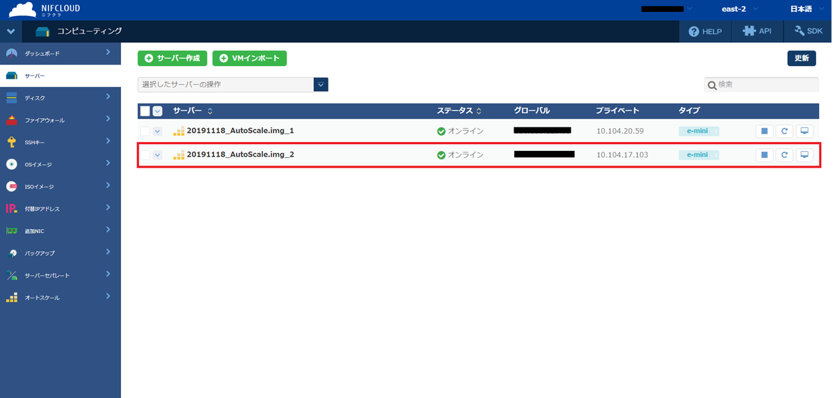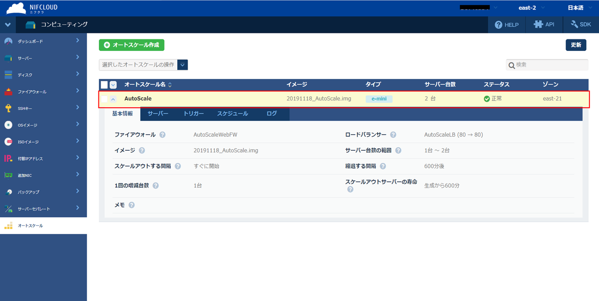 ※FJcloud-V(旧ニフクラ)の仕様として、オートスケールを作成するとスケールアウトサーバーが生成されます。