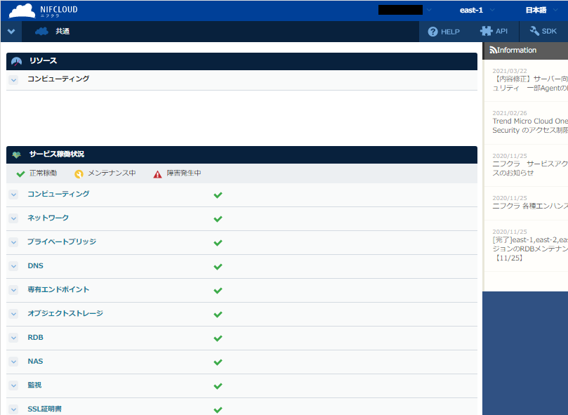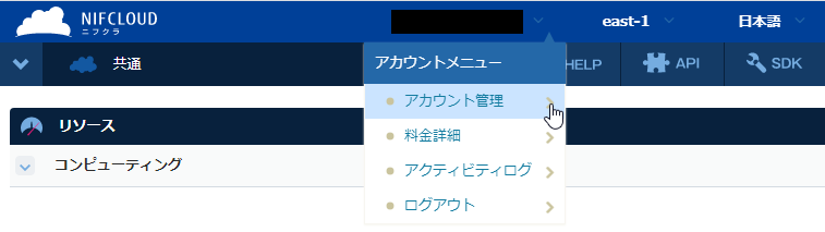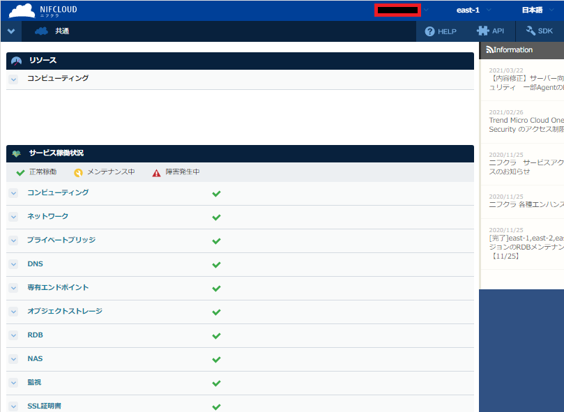 ①-4 親アカウントでFJcloud-V(旧ニフクラ)コントロールパネルにログインできたことを確認します。