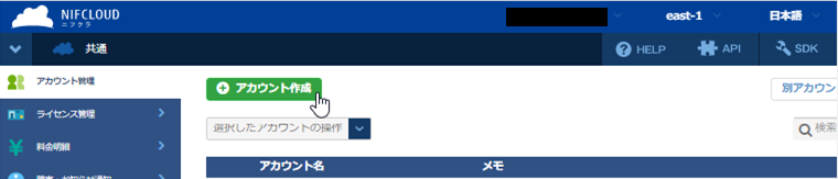 ①-2 アカウント管理メニューから『⊕アカウント作成』を選択する。
