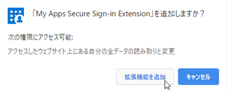 WebブラウザにはGoogle Chromeを使用し、Chromeウェブストアから「My Apps Secure Sign-in Extension」をインストールします。