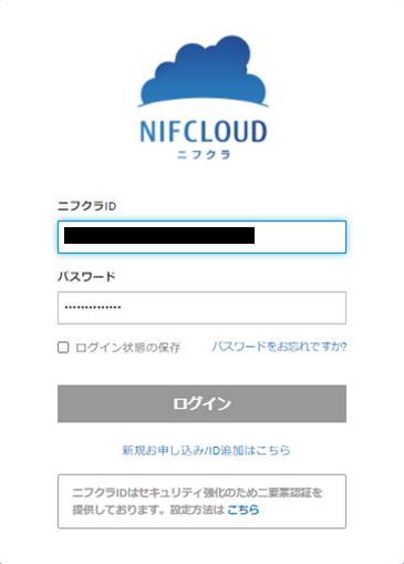 ①-3 FJcloud-V(旧ニフクラ)コントロールパネルのログイン画面に遷移し、そのまま自動でID/パスワードが入力されログイン処理が走ります。