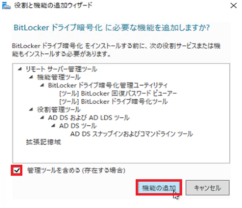 機能の選択1 - 7. 『管理ツールを含める(存在する場合)』にチェックを入れ『機能の追加』を選択