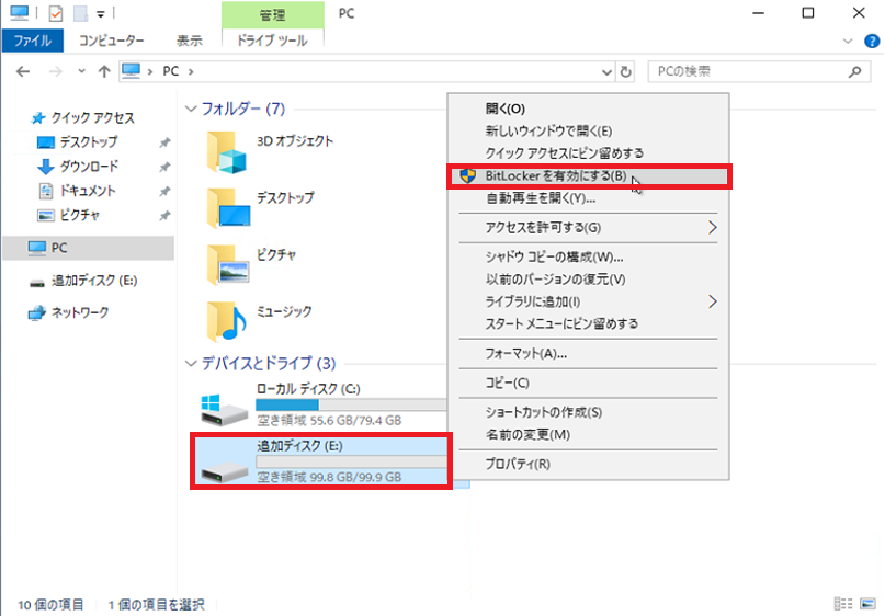 BitLockerで増設ディスクを暗号化する方法