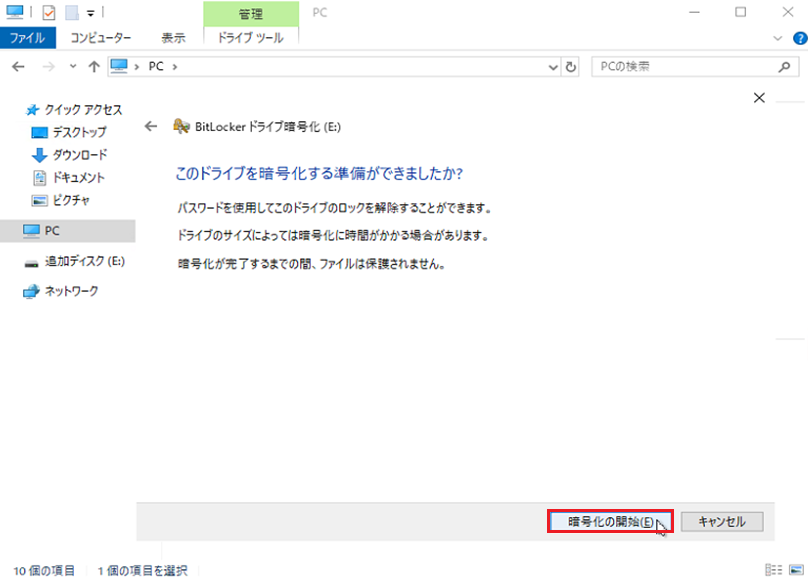 暗号化モード選択 - 7. 『暗号化の開始(E)』を選択