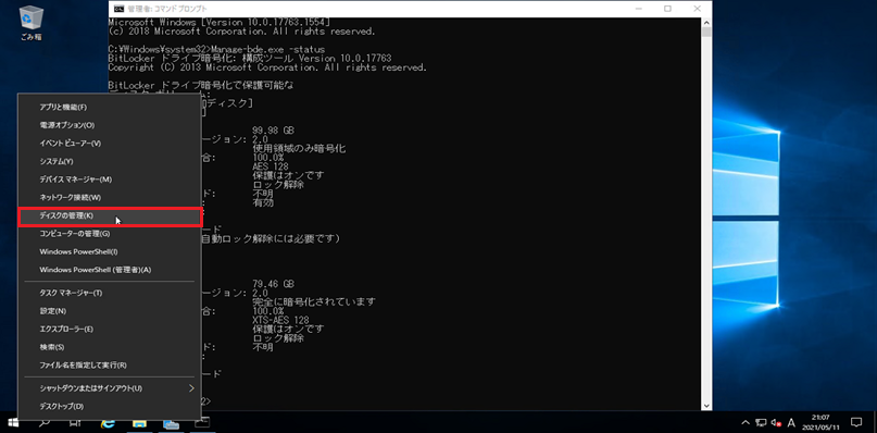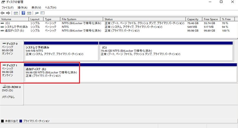 本記事では、増設ディスクの暗号化を「BitLocker」を使用して実施しました。