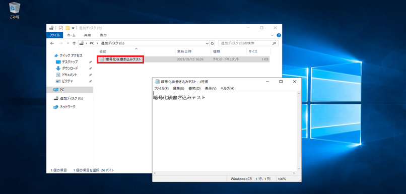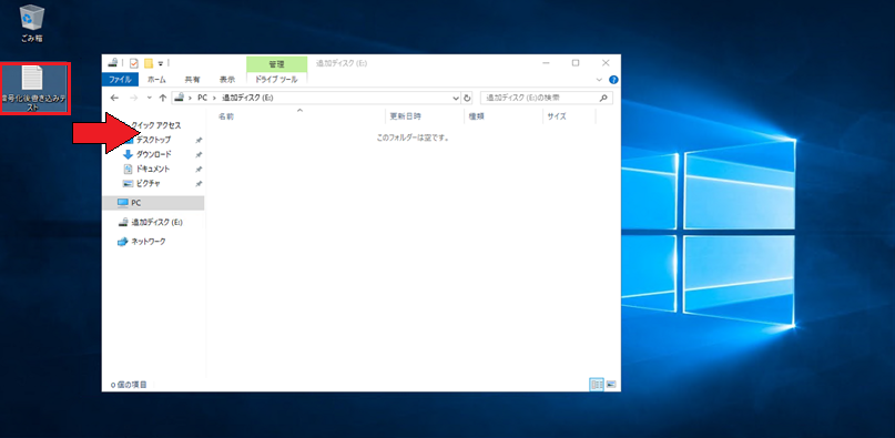 - 1. デスクトップ上にテスト用ファイルを作成し、『増設ディスク』に配置