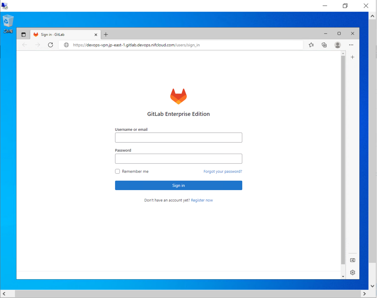 ブラウザを起動してDevOpsサーバーのGitLab URLを入力するとGitLabのログイン画面が表示されます。