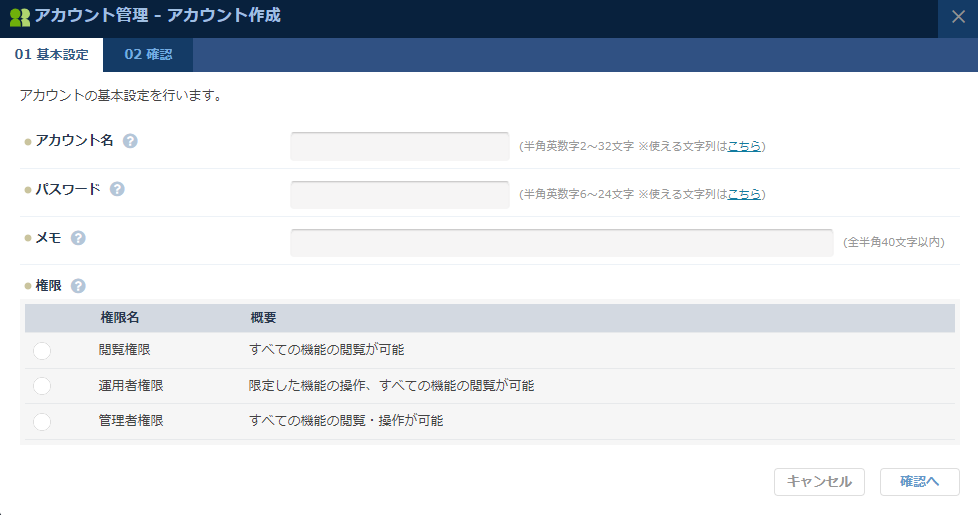 「アカウント作成」をクリックし、必要事項を入力して新規マルチアカウントを作成します。