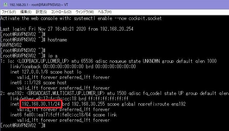 | RAVPNSV02 | 利用しない | 192.168.30.11 |