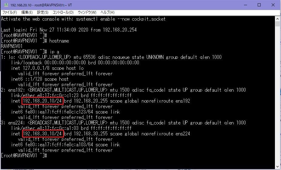 | RAVPNSV01 | 利用しない | 192.168.20.10 | 192.168.30.10 |
