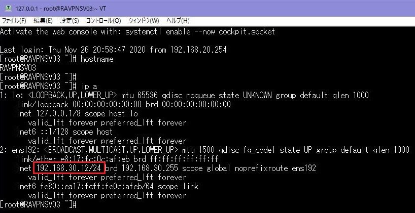 | RAVPNSV03 | 利用しない | 192.168.30.12 |