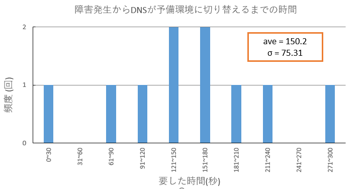この仕様に従うと、ニフクラDNSがセカンダリのレコードを返すまでに要する時間は数秒\~5分であることが分かります(図6)。 したがって、図5が示すとおりDNSのレコード切り替えは300秒以内に行われることが分かります。