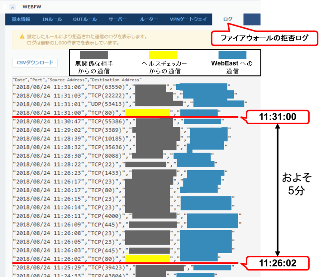 本ルールを設定していない場合、プライマリに設定したWebEastではなくセカンダリのWebWestに繋がり続けるという、意図しない挙動が発生します。この問題の回避するためには、ヘルスチェックが行われるサーバーすべてのファイアウォールに対して80番ポートへのアクセスをすべて許可すれば解決されます。しかし、ファイアウォールで許可された接続元からのみのアクセスに絞りたいと言った場合に、上記では対応できません。そういった要件が予めわかっている場合は、お手数ですが、弊社窓口へお問い合わせください。