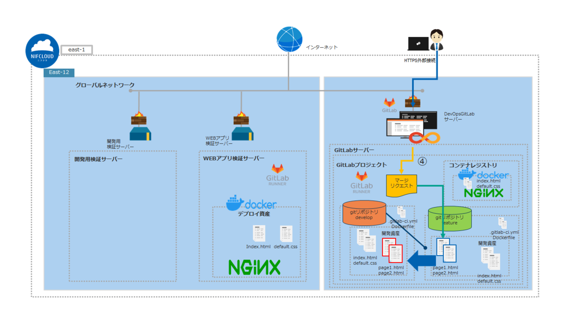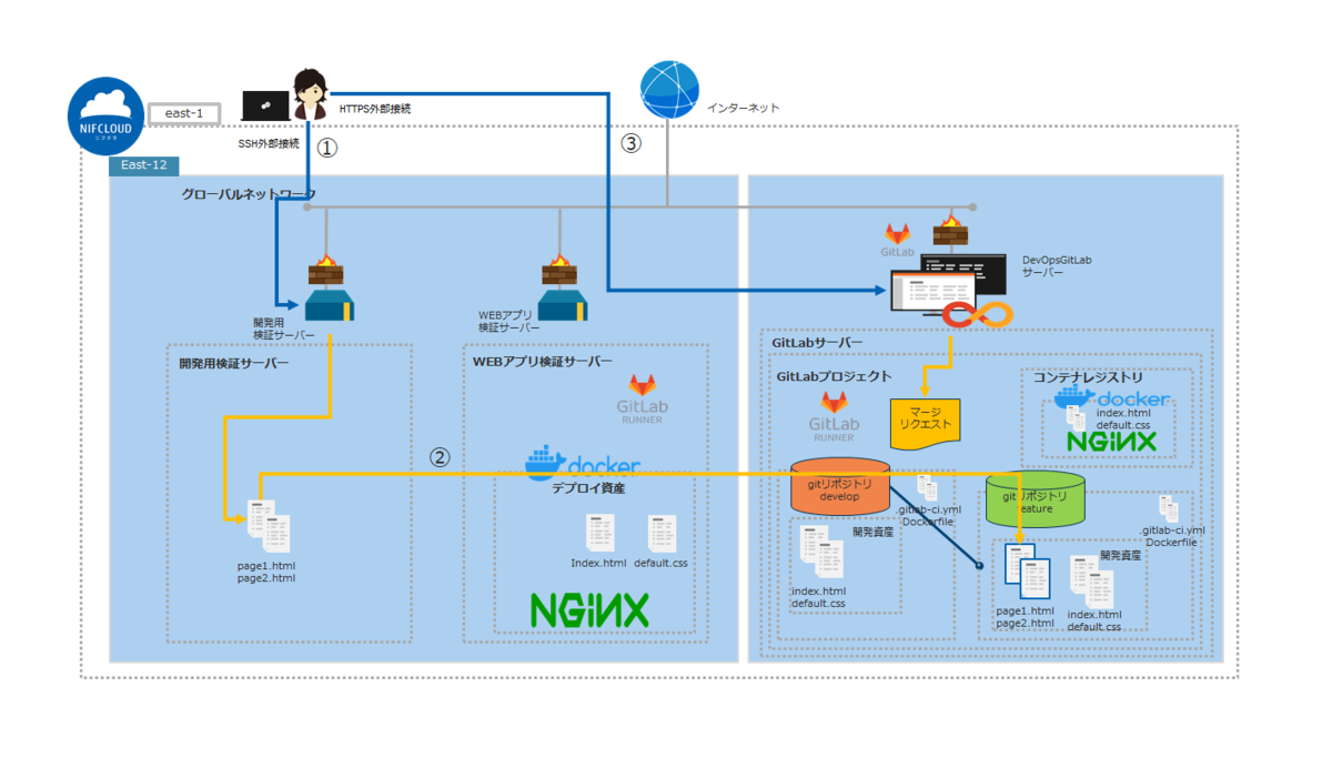 FJcloud-V(旧ニフクラ)DevOps with GitLabを導入して本ブログの手順を参考にすれば1~3日でDevOps開発の環境構築~基本的な作業の流れが把握できます。