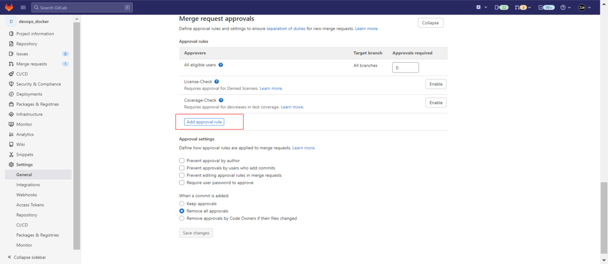 検証ではマージ承認ルールを設定してマージ実行を制御しました。