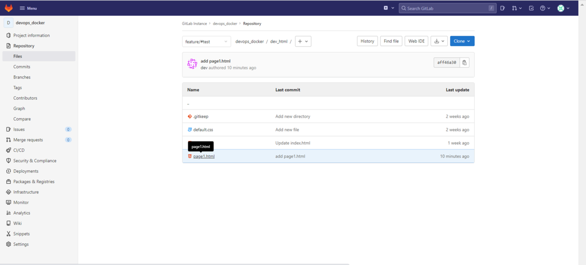 DevOps with GitLabサーバーのdevelopブランチの内容がマージされて更新されていることが確認できます。