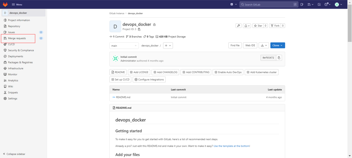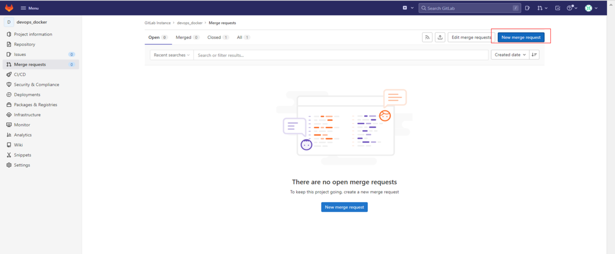 「Create merge request」ボタンをクリックしてマージリクエストを作成します。