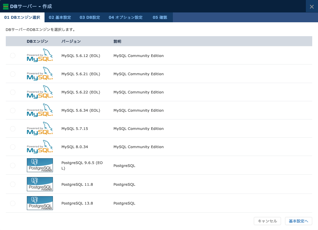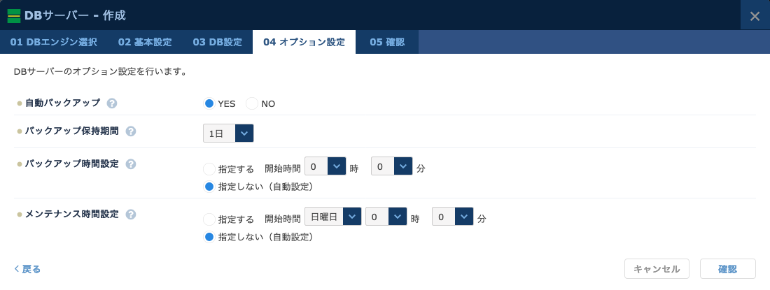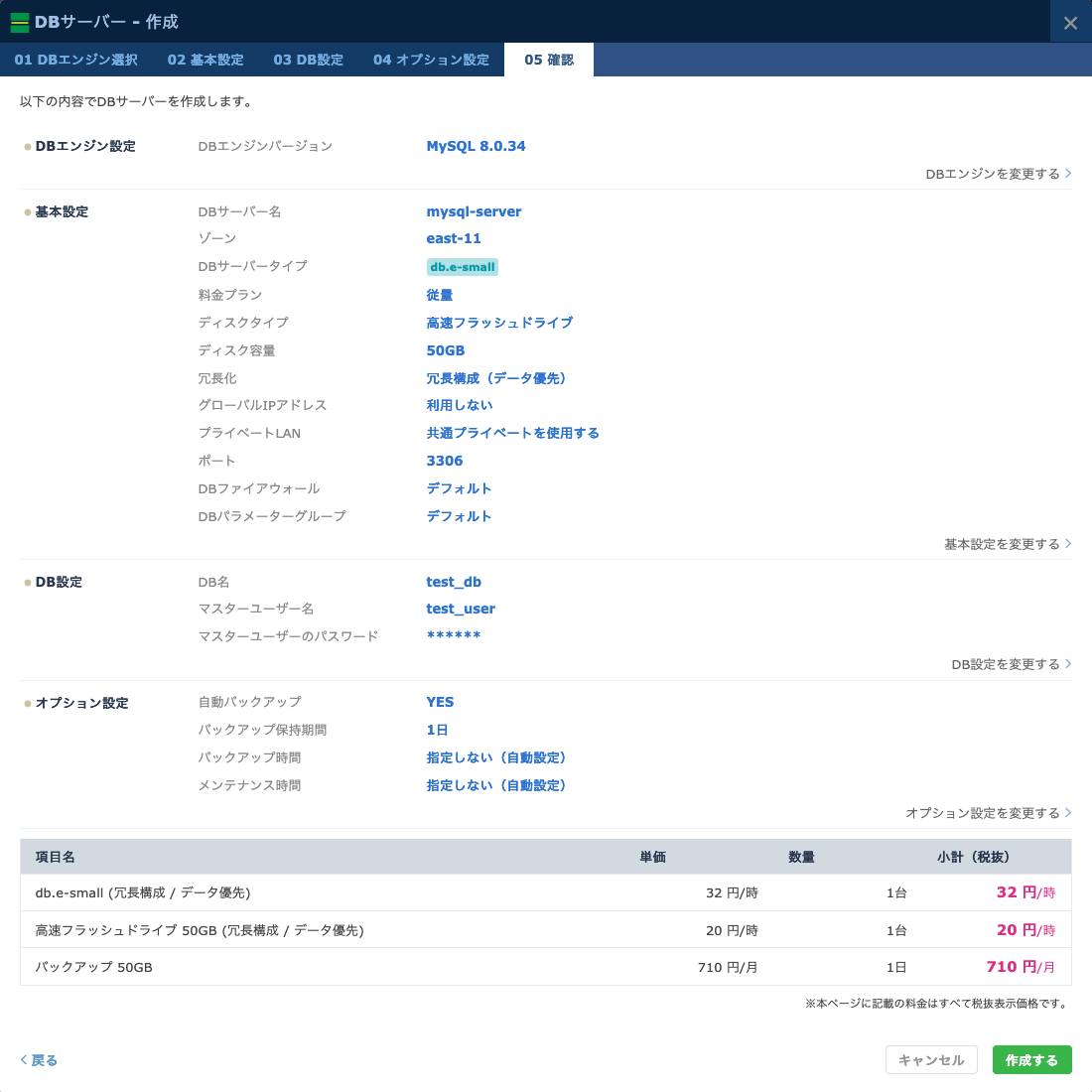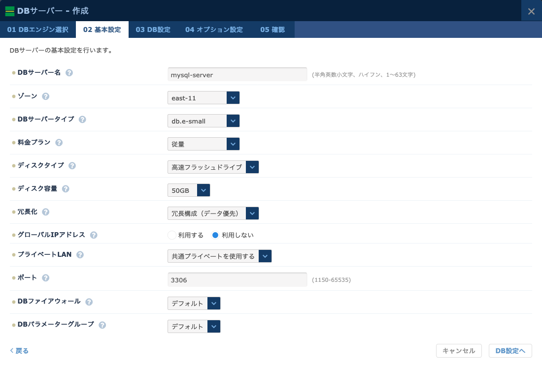- DBサーバータイプ: DBサーバーのインスタンスタイプです。要求されるスペックに応じて選択しましょう。