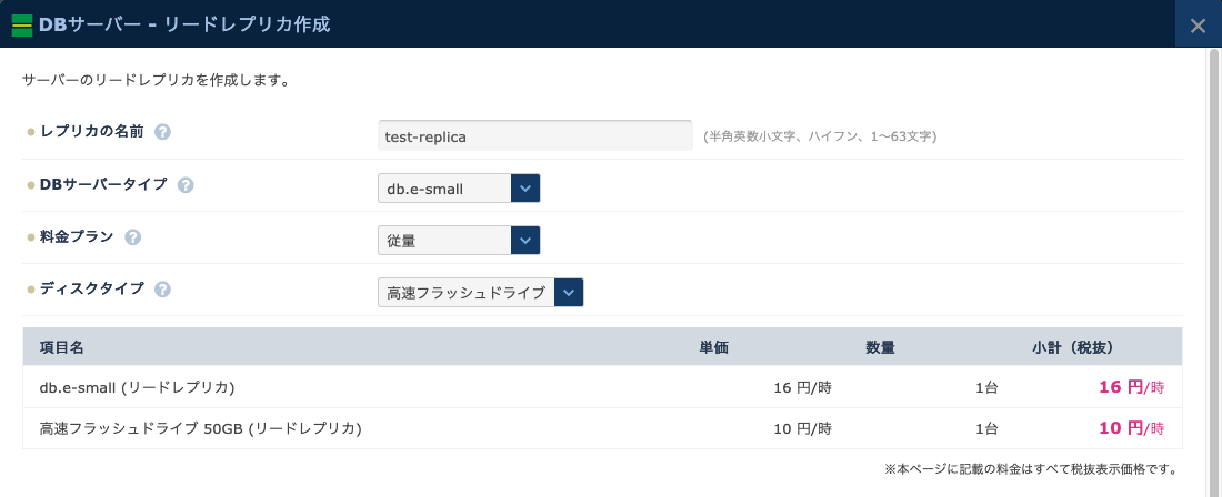 - DBサーバータイプ: リードレプリカのインスタンスタイプです。要求されるスペックに応じて選択しましょう。