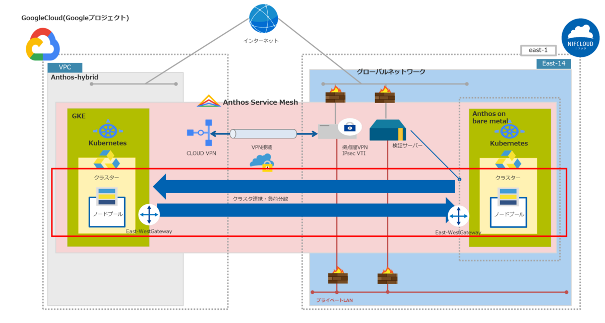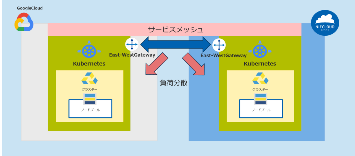 今回はマルチクラスタメッシュ構成_East-WestGateway作成してFJcloud-V(旧ニフクラ)とGoogleCloudのKubernetesクラスタで負荷分散を構成する方法を紹介します。