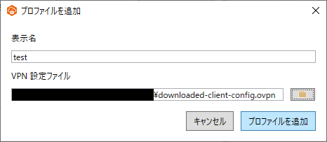| VPN設定ファイル | 格納場所\downloaded-client-config.ovpn |