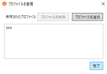 (2) 「プロファイルを追加」を選択し、保存されたプロファイルに名前が表示されることを確認後「完了」を選択します。