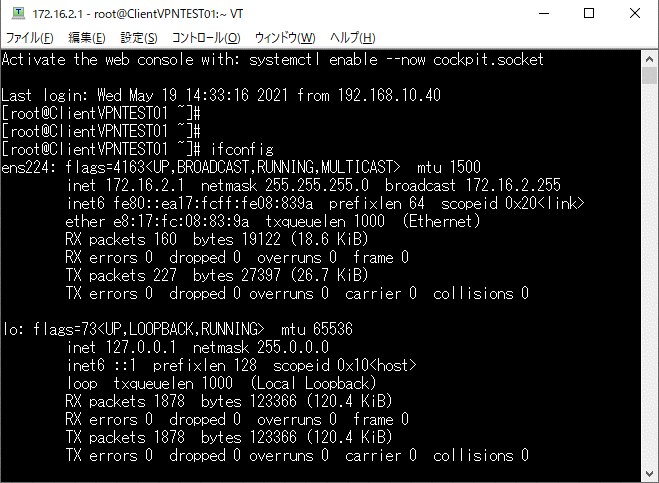 | ルート送信先 | 172.16.2.0/24 |