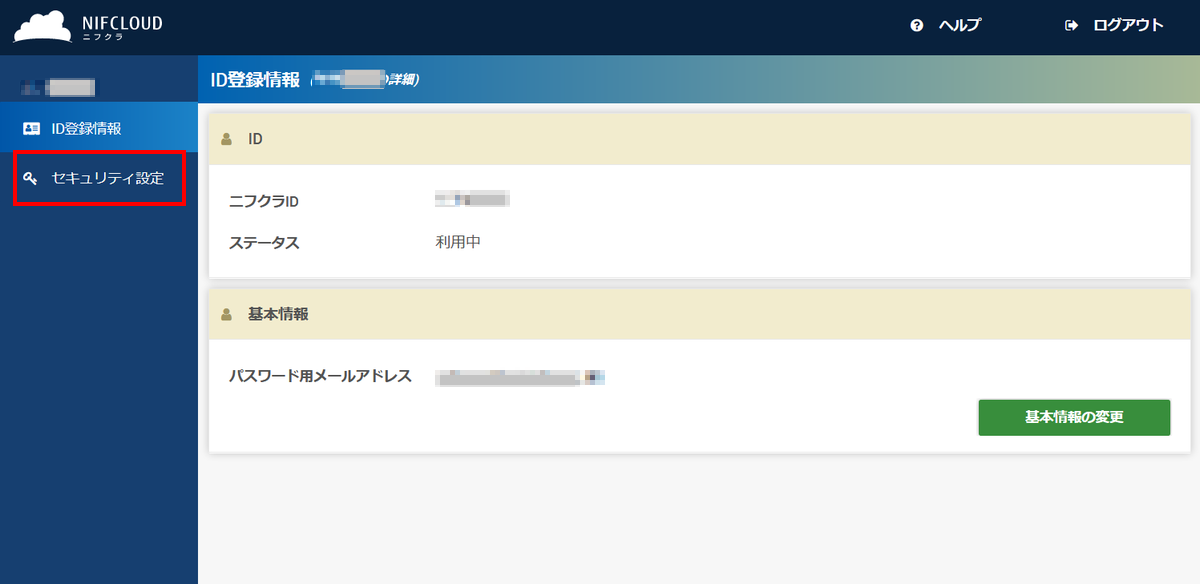 この画面が表示されたら左メニューに鍵マークのある「セキュリティ設定」をクリックしましょう。