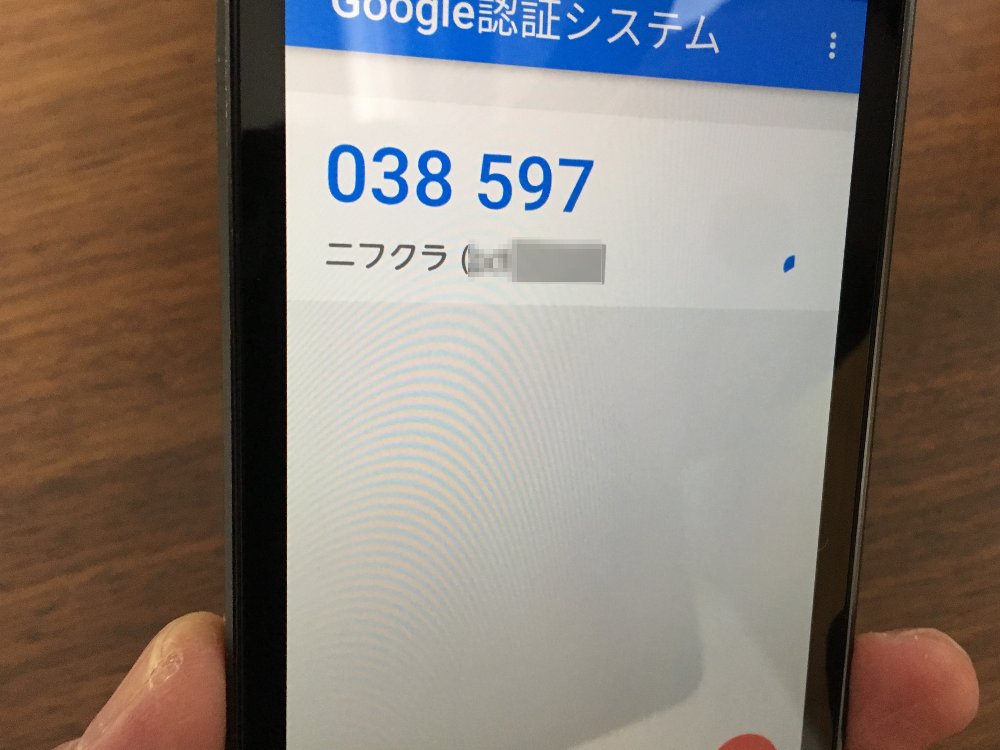 ログインすると、スマートフォンアプリ(今回はGoogle Authenticator)に通知が送信されて、ワンタイムパスワードが表示されているはずです。