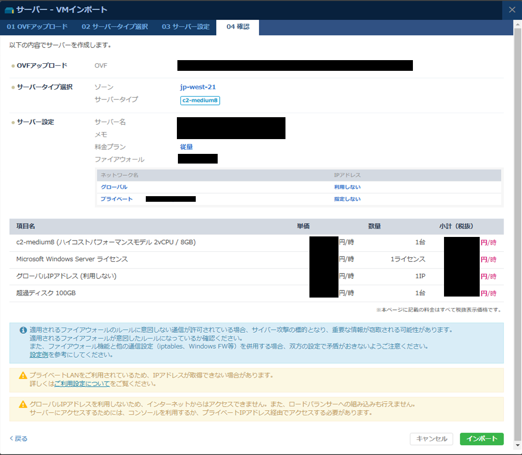 VMインポートを利用し、インポート先のサーバーを作成します。