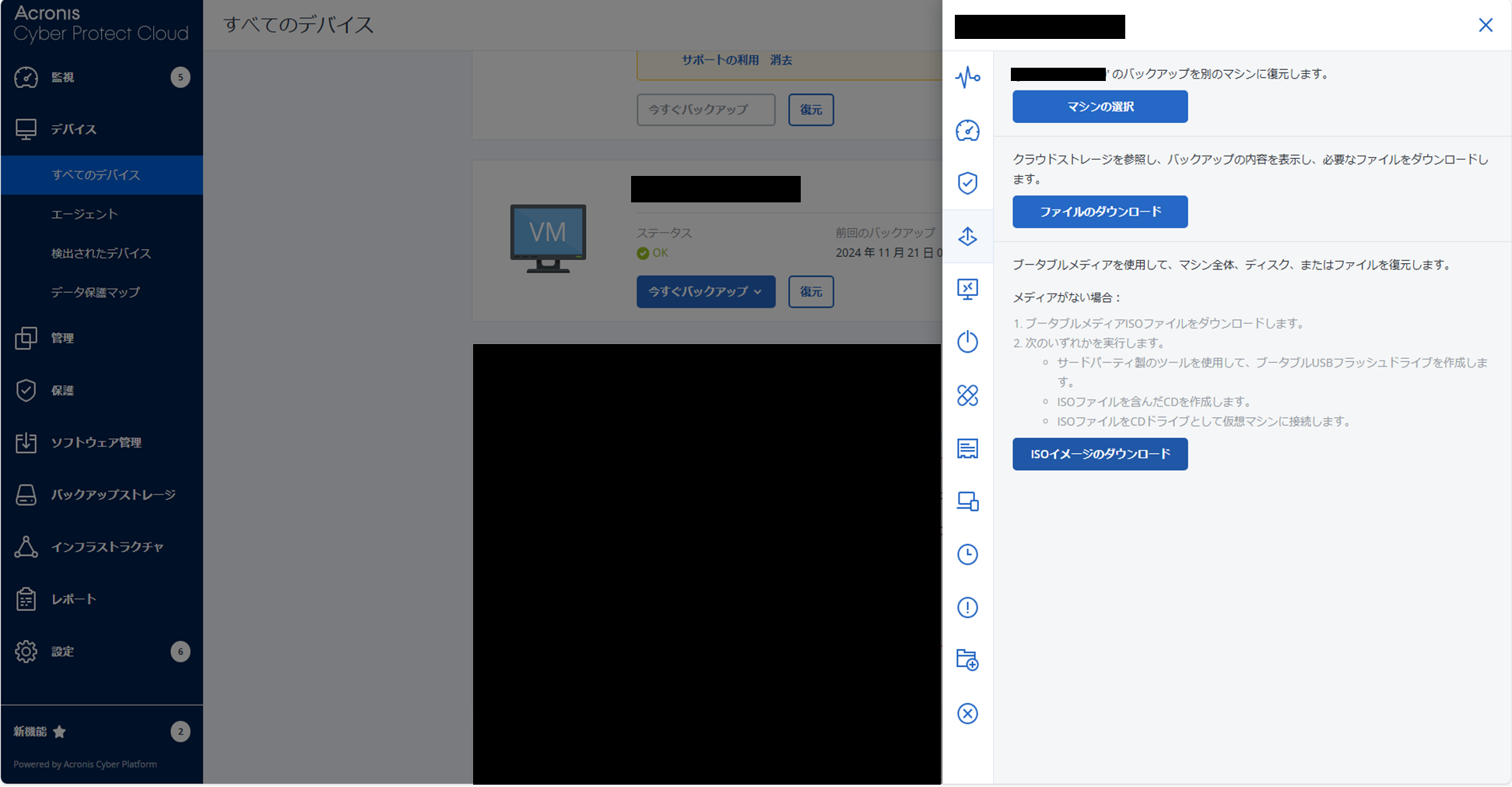 Acronisポータルより、復元用ISOイメージをダウンロードする。