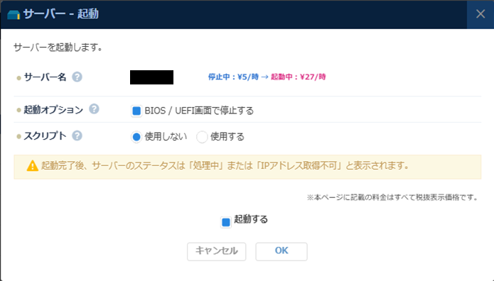 - サーバーを起動し、OSが正常に起動すれば完了です。