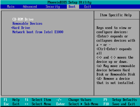 起動後、BIOSから「CD-ROM Drive」の起動順番を一番上に変更します。