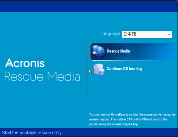 Acronisが起動してきたら、「Rescue Media」を選択します。