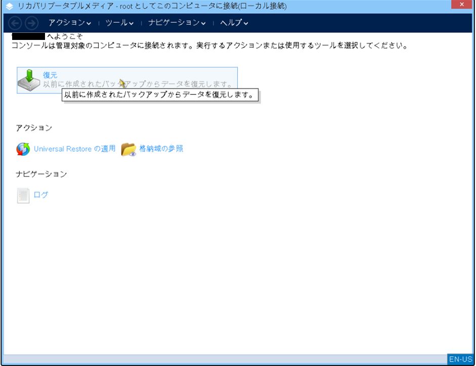 ユーザーガイド 復元 ISOイメージを参考に、作業を実施します。