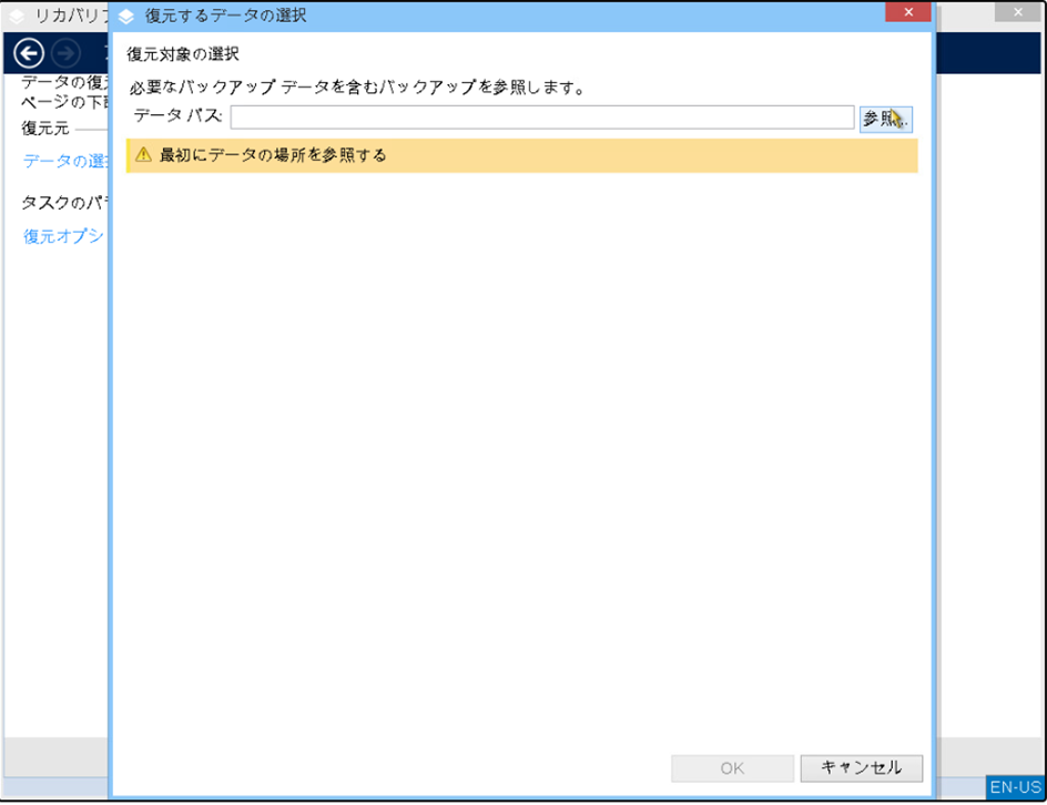 「復元」→「データの選択」→「参照」をクリックします。