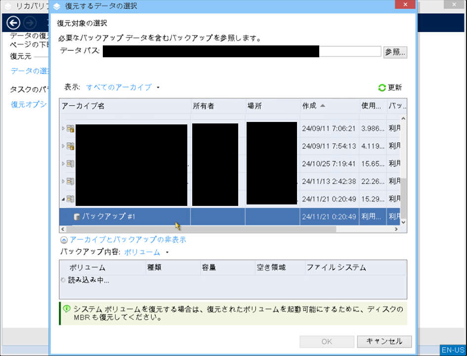 Acronisのブータブルイメージを利用した、OS復元