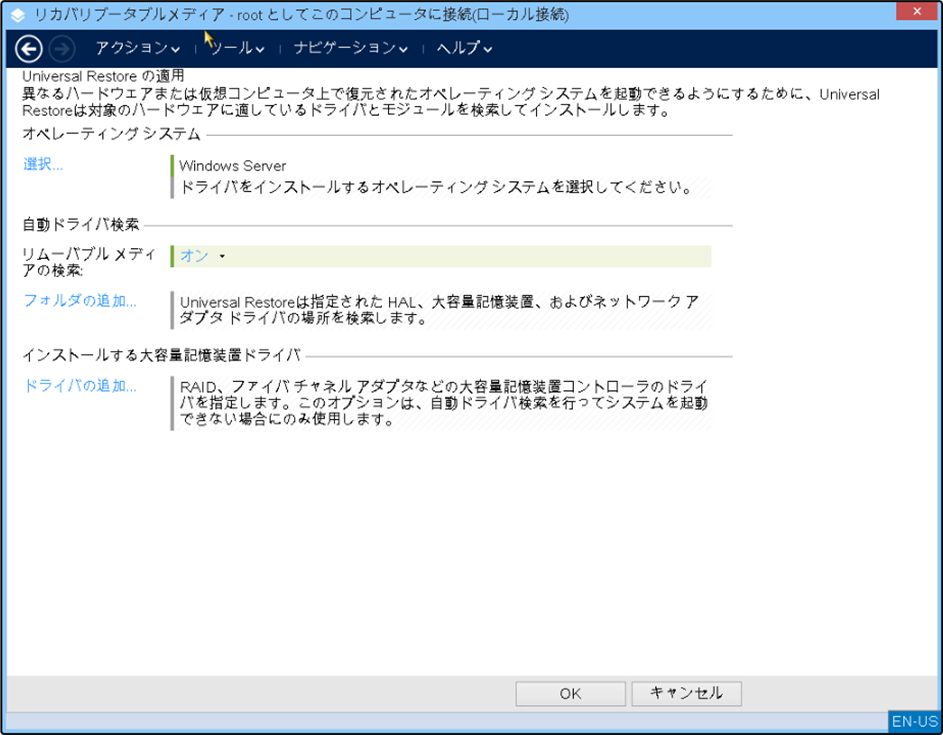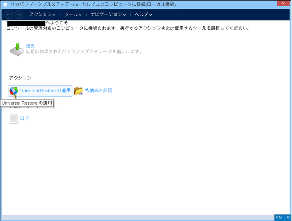 ユニバーサルリストアの実施