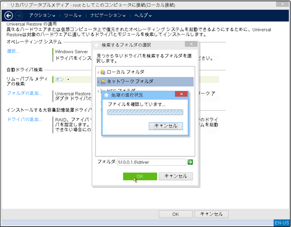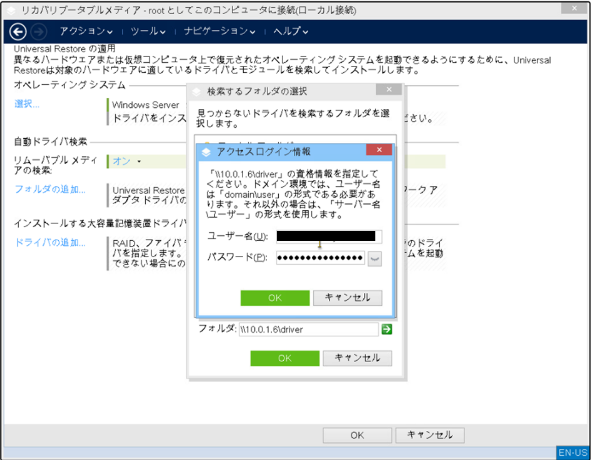 「自動ドライバ検索」の「フォルダの追加」を選択し、4)で共有したフォルダのパスを入力します。