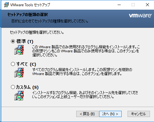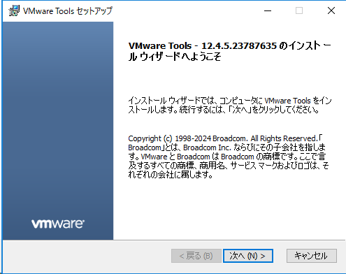 「VMware-tools-~~.exe」を実行し、Vmware Toolsをインスト-ルします。