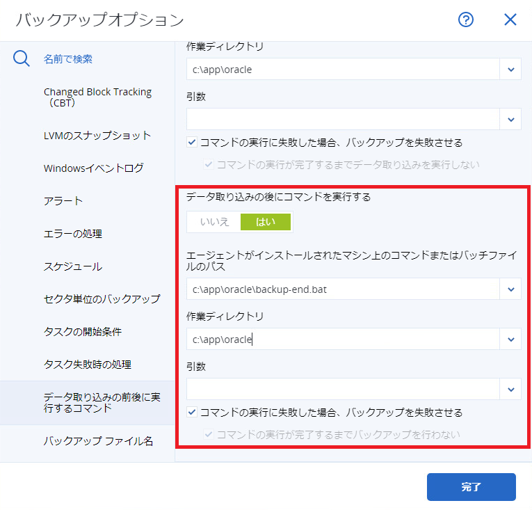 Acronisバックアップの開始・終了時にOracleのバックアップモードを切り替えるためのスクリプトを用意します。